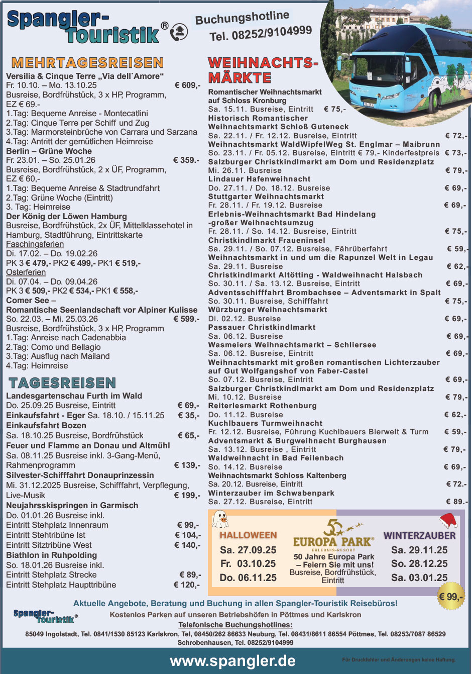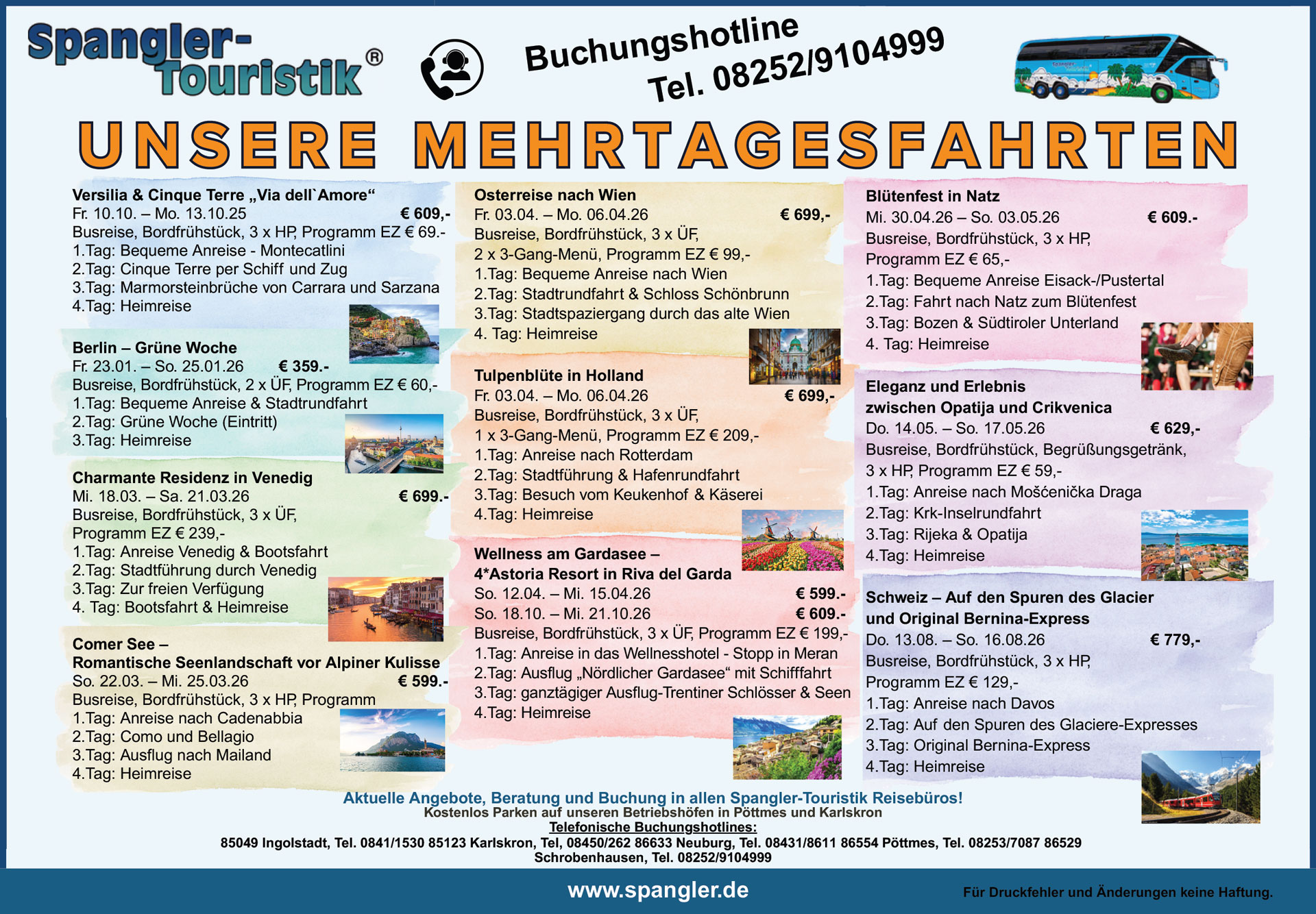 Unsere Reisebüros finden Sie in Ingolstadt, Neuburg, Karlskron, Schrobenhausen und Pöttmes.
